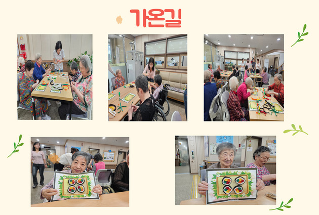 또한 가온길팀은 어르신들과 함께 종이 김밥 만들기 활동을 진행하고, 완성까지 정성스럽게 도와드리며 따뜻한 시간을 나눴습니다.