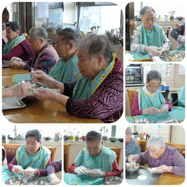 고유의 명절 설날을 맞이하여 명절의 의미를 되새기고, 심리적으로 안정을 유지하실 수 있도록 설명절 음식만들기 및 특식, 간식 제공을 진행하였습니다. 어르신들의 만두빚는 솜씨가~~ 짱!!