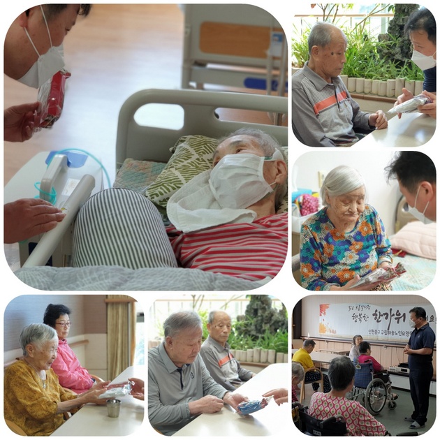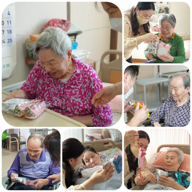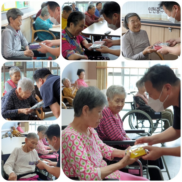우리 고유의 명절 추석을 맞이하여 명절의 추억들을 나누며 심리적 안정을 유지하실 수 있도록 조그마한 선물을 준비하여 전달하였습니다. 인천 중구 자원봉사센터에서 한지를 오려 정성껏 만들어주신 꽃신과 간식, 인사카드 등을 포장하여 한분 한분 인사드리니 어르신들의 얼굴에도 웃음꽃이 가득했답니다!