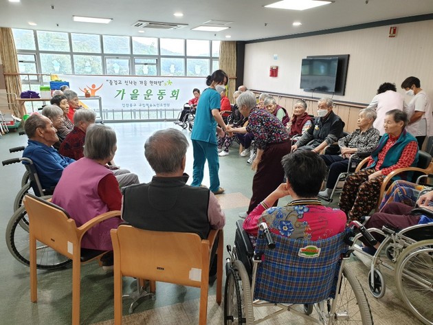 우리 요양원에서 매년 가을 무렵에 지역사회 봉사 단체와 함께 가을운동회를 진행하였으나, 금년의 경우 코로나19 로 인한 감염예방을 위해 실내에서 종사자 들과 함께 가을 운동회를 진행하였습니다. 가을운동회를 통해 심신의 안정과 잔존근력을 높이는 소중한 시간이 되었습니다.
