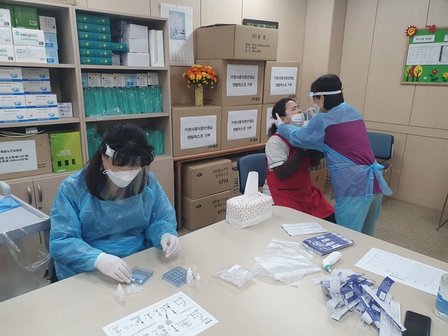 설명절 이후 근무에 복귀하는 전 직원을 대상으로 요양원 자체에서 신속항원검사 진행 후