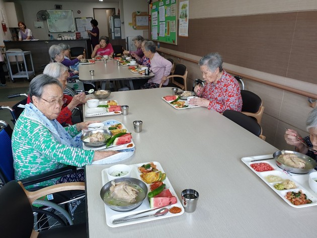 무더위를 맞이하여 요양원 어르신들의 건강한 여름나기를 위해 삼계탕 특식을 제공해 드렸습니다.