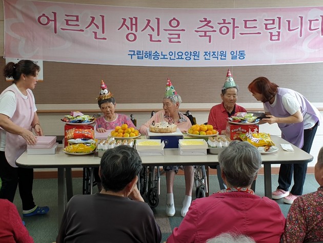우리 요양원에서는 8월에 생신을 맞이하는 어르신을 대상으로 생신잔치 및 축하공연을 진행하였습니다.