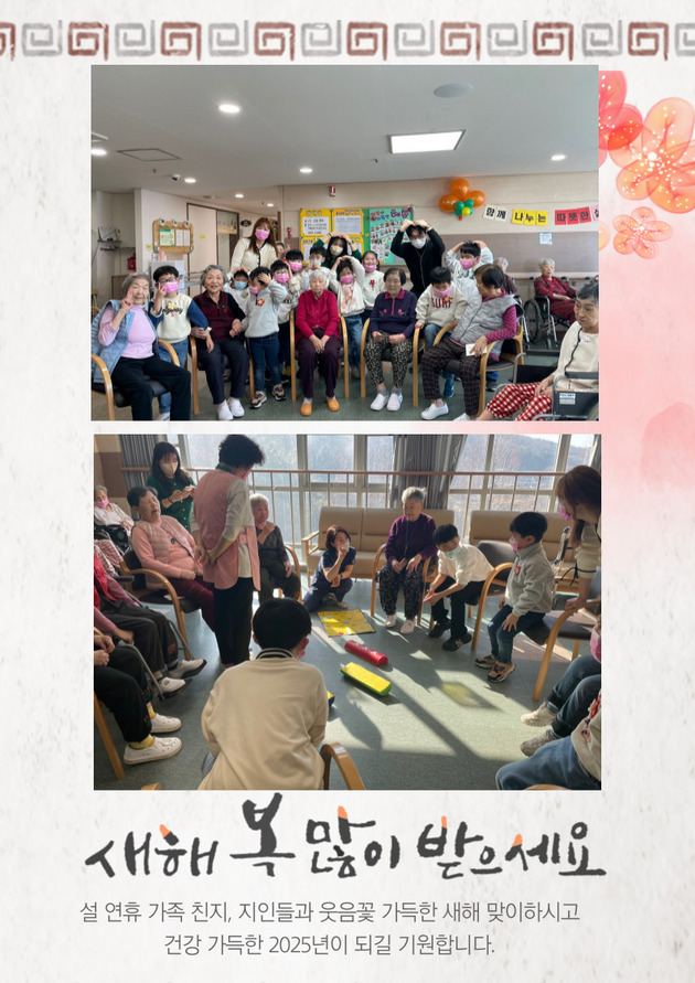 구립해송노인요양원은 1월 23일 (목) 함께 나누는 따뜻한 설날이라는 주제로 보라매아동센터 아이들과 함께 따뜻한 설날행사를 맞았습니다.