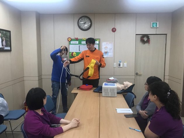 요양원의 화재예방 및 어르신들의 응급상황 대처를 위하여 영종소방서의 소방교육을 진행하였습니다