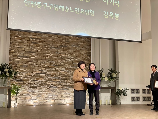 구립해송노인요양원 김옥봉 요양보호사가 중구 구청장상을 수상하며 지역 사회복지 발전에 기여한 공로를 인정받았다.