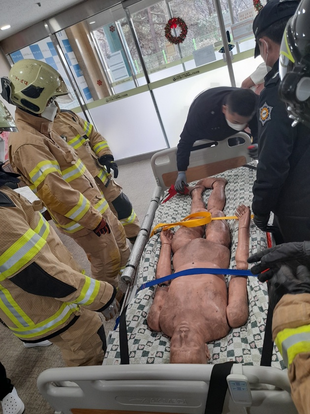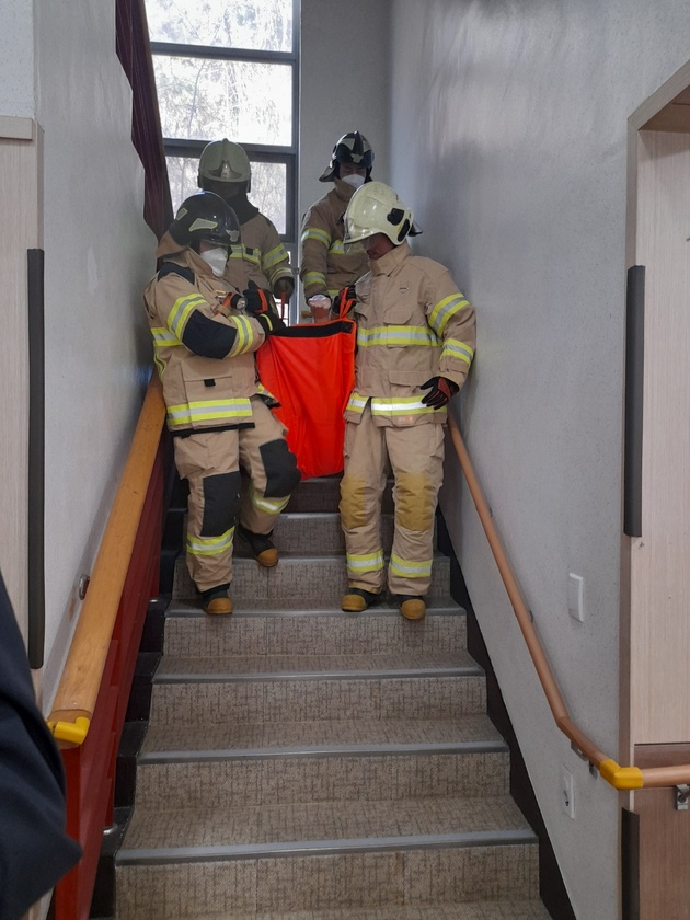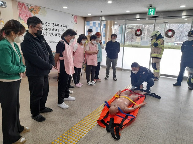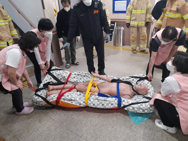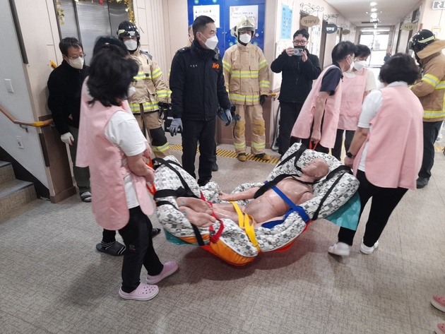 1/16 소방 대피훈련을 실시하였습니다. 옥상 대피훈련, 소방대원들과 직원들이 참여하여, 화재시 와상 어르신 대피시키는 모습을 시연하였습니다..화재시 주의할 것과 대피요령 등도 함께 훈련하였습니다..