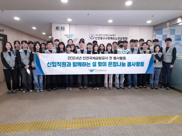 2/5일 인천국제공항공사에서 설 명절을 앞두고 인천 사회복지모금회 등과 함께 우리 구립해송 노인요양원에 지역특산물 꾸러미를 나눠주고 공항공사 신입직원들이 봉사활동을 진행하였습니다. 이날 봉사활동에는 이학재 인천공상공사 사장과 신입 직원 38명이 참여했습니다. 이날 요양원에서 어르신 식사보조, 요양원 내.외부 청소를 하며 시설 관계자들과 설 맞이 준비를 함께 했습니다. 설 명절 특식도 함께 나눠먹으며 오후시간에 투호놀이 프로그램을 함께하며 즐거운 시간을 보냈습니다.