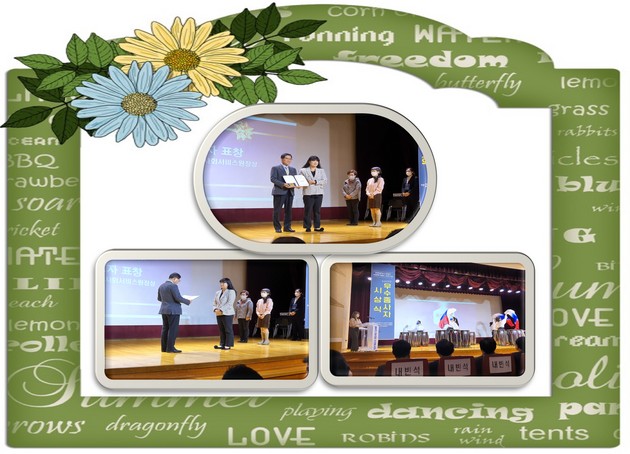 12/14 인천노인복지시설협회 공로자시상식에서 저희 간호팀 이강미 선생님이 시상을 하였습니다. 그리고 많은 축하공연과 함께 인천시설협회 회장님을 비롯하여 서구청장님 등 많은 분이 참석하여 이 자리를 빛내주셨습니다. 이강미 선생님 축하합니다.