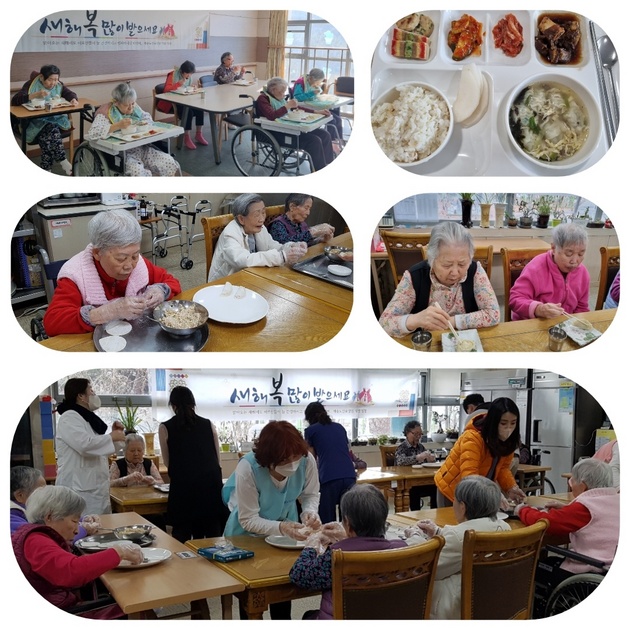 “설맞이 행사”로 1/19(목) ‘만두 만들기’를 진행하여 복을 담는 마음으로 예쁘게 만두를 빚으시고 쪄서 간식으로 제공해드리기도 하고 1/20(금) ‘특식제공' 하여 명절의 기분을 느끼실 수 있도록 진행하였다.
