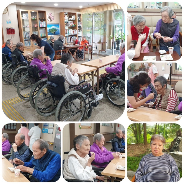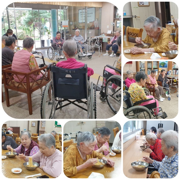 어르신들의 식이별로 섭취 가능한 간식을 준비하여 제공하여 드린 후 가벼운 산책을 진행했어요! 일반식 드시는 어르신들의 라면사랑은 끝이 없답니다~^^