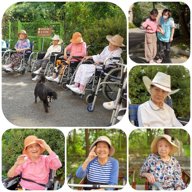 가을 하늘이 너무 예쁜 오후, 어르신들과 주변을 산책하며 힐링의 시간을 가졌습니다. 해송의 귀염둥이 모찌(강아지)가 오랜만에 재롱을 부려서 큰 웃음을 주었답니다~^^
