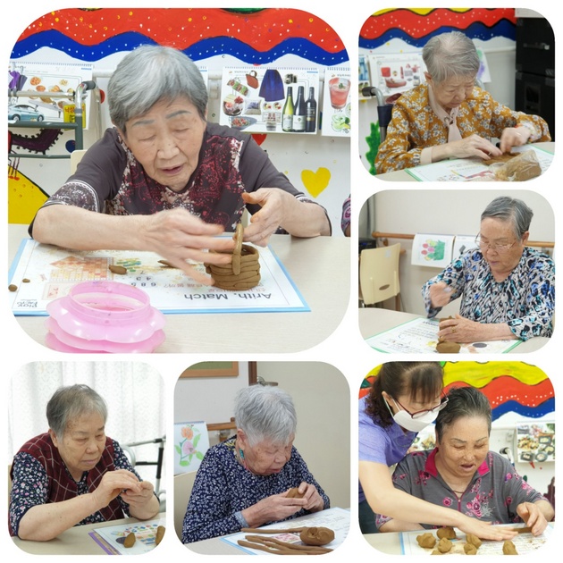 찰흙을 길게 늘리거나 속 파내기, 벽돌 쌓기 등의 다양한 방법으로 찰흙작품을 만들었어요. 가마솥과 뚜껑, 우물과 두레박 등 어르신들의 상상 이상의 표현에 감탄하는 시간이였답니다.