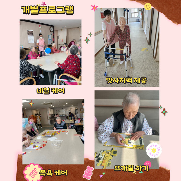 어르신의 욕구에 맞춰 개별프로그램을 진행고자 합니다.
