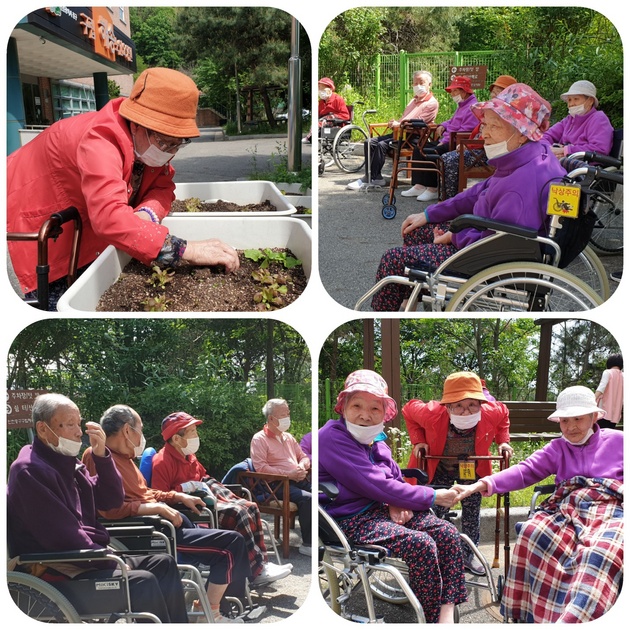 상추 모종을 미니 화단에 옮겨 심기를 함께 지켜보신 후 산책을 진행하였습니다!
