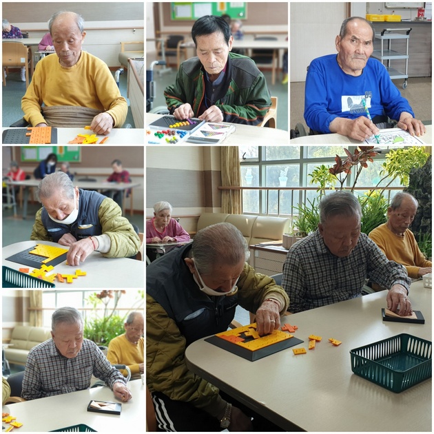 어르신들의 인지능력에 맞춰 다양한 교구를 준비하여 드린후 함께 해결해가며 즐거운 시간을 보냈습니다^^