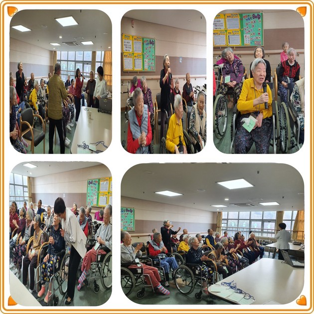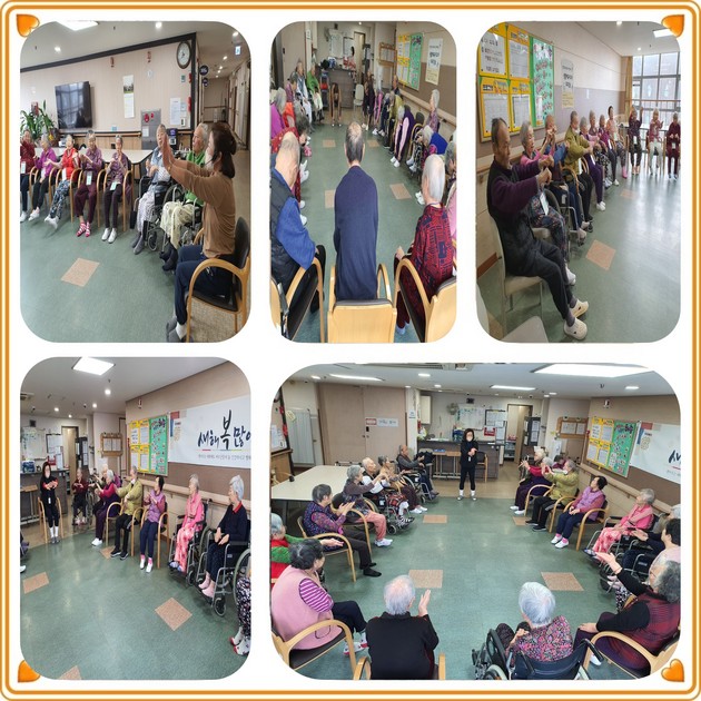 꽃향기로 가득한 새봄을 맞이하여 겨울 동안 실내에서만 지내시는 어르신들의 마음에도 따뜻한 봄날처럼 따스하고 즐거움이 한껏 다가오는 시간이 되기를 바라며 외부강사를 초청하여 프로그램에 즐거움과 활력을 드리는 시간을 마려하였습니다. 해송노인요양원은 어르신들의 정서적 안정, 우울감 해소에 도움을 주려 노력하고 있습니다.