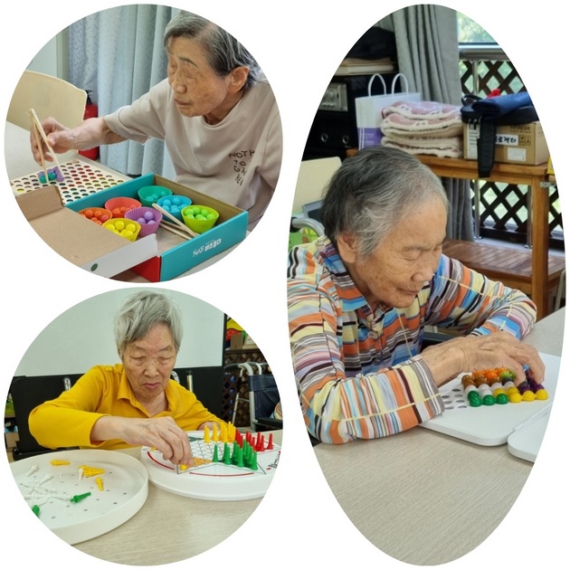 다양한 교구들을 제공하여 어르신들의 잔존기능유지 및 인지기능저하를 예방하는데 도움을 드림