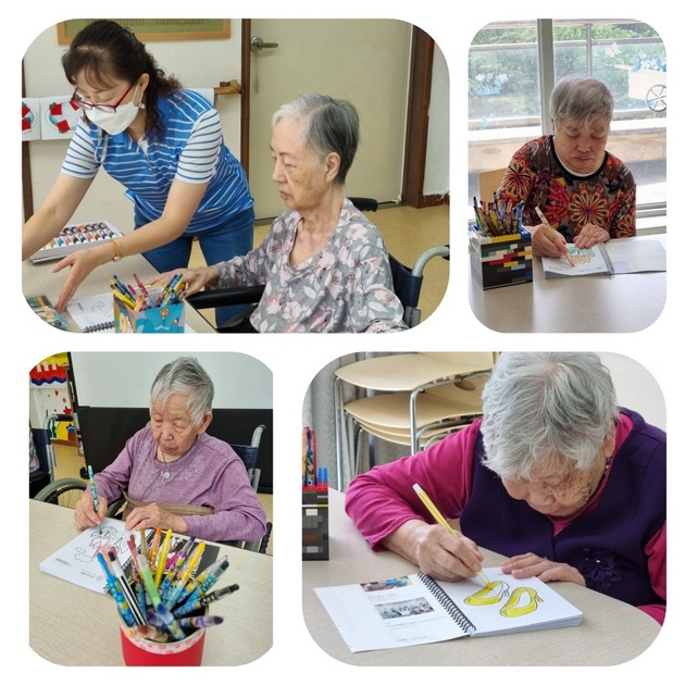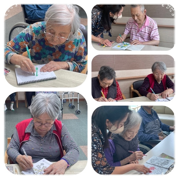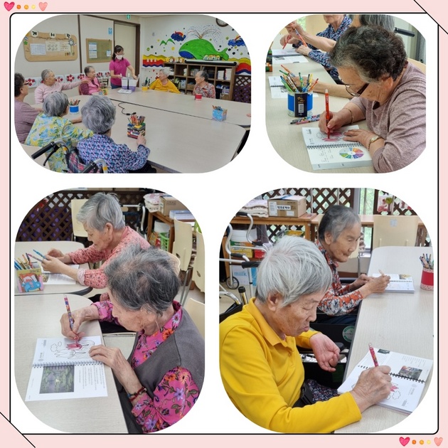 영종자원봉사센터 후원해주신 컬러링북을 제공하여 열심히 색칠하시며 미술교실 참여하시는 어르신들의 모습~