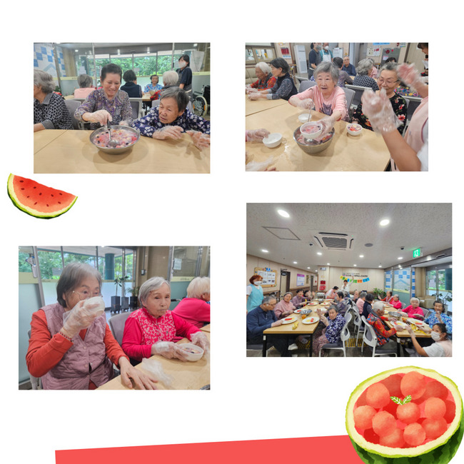 어르신들께서 늘 요리를 만들어 보고 싶다고 하셔서 무더운 여름을 시원하게 이겨낼 수 있는 수박화채를 만들어 보았습니다.