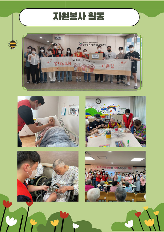 따뜻한 마음을 나눠주신 파라다이스 가온길 봉사단체에 다시 한번 감사드리며 저희 요양원은 앞으로도 어르신들의 삶의 질 향상을 위해 최선을 다하겠습니다.