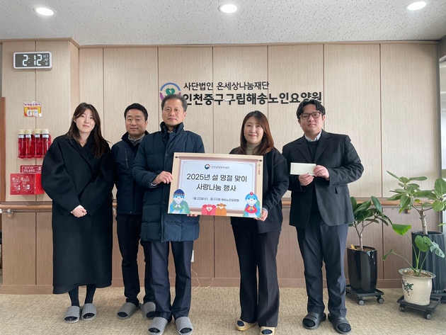 25년 1월 22일 인천공항세관에서 추석에 이어 설날에도 구립해송노인요양원에 방문하여 어르신들께 사랑을 나눴습니다.