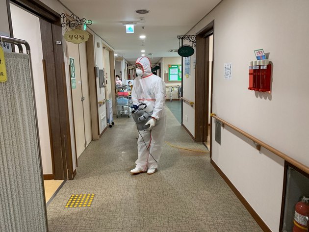 매주 화요일 방역을 실시하고 있으며, 하루 2회 손이 자주 닿는 곳을 소독액을 뿌려 닦고 있습니다.