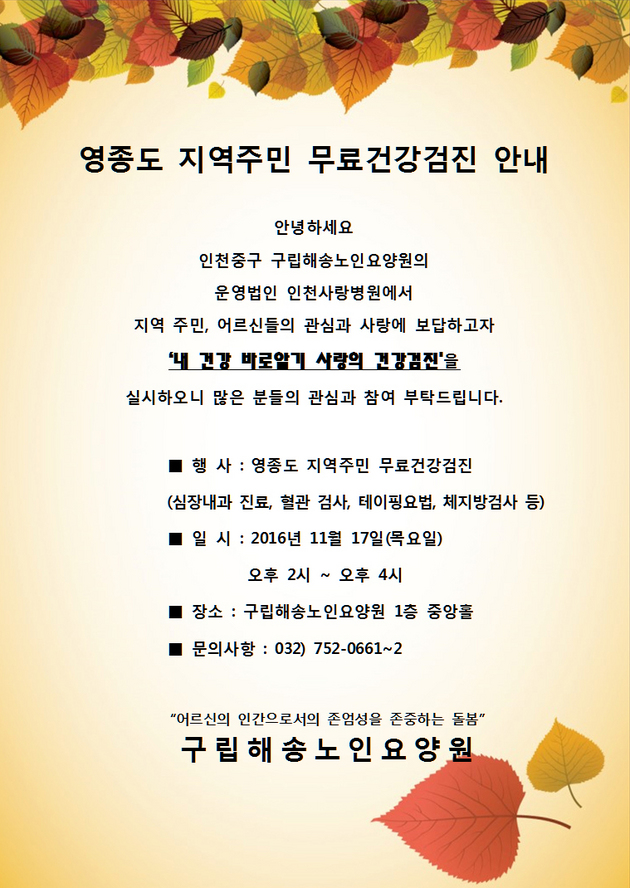 2016 영종도 지역주민 무료건강검진 안내