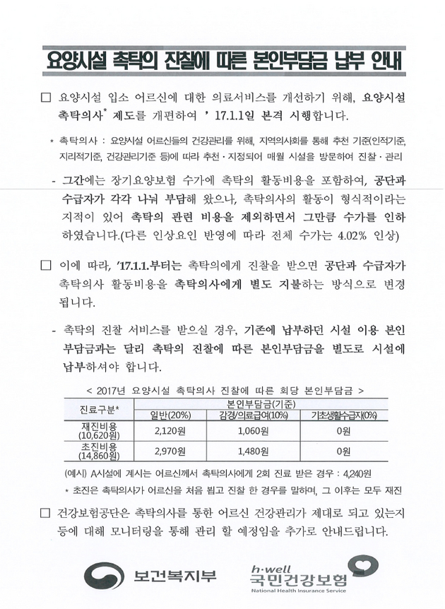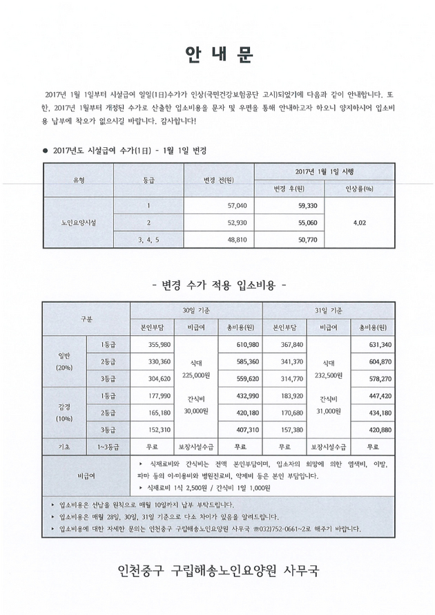 | 제목 | 2017년 입소비용 변경 안내 및 촉탁의 진찰 본인부담금 안내  |